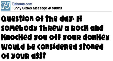 - # 19648 Random thought of the day: If someone threw a rock and knocked you off your donkey, would you be stoned off your ass?