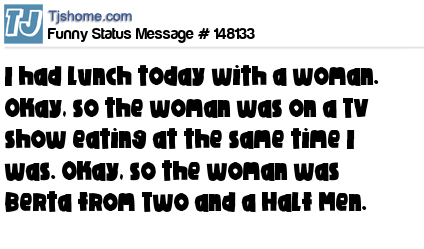 X I had lunch today with a woman. Okay, so the woman was on a TV show eating at the same time I was. Okay, so the woman was Berta from Two and a Half Men.