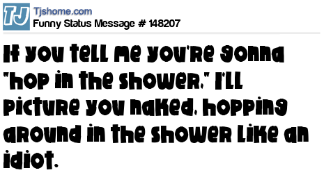 - # 18965 I don't see why people have to say in thier status they they are getting in the shower. I don't want to picture your bare fat behind in the shower!