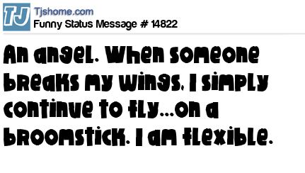 - # 29844 Women are angels. And when someone breaks our wings, we simply continue to fly...on a broomstick. We are flexible like that.