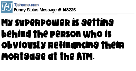 X My superpower is getting behind the person who is obviously refinancing their mortgage at the ATM.
