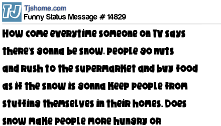 X says how come everytime someone on TV says there's gonna be snow, people go nuts and rush to the supermarket and buy food as if the snow is gonna keep people from stuffing themselves in their homes. Does snow make people more hungry or something??