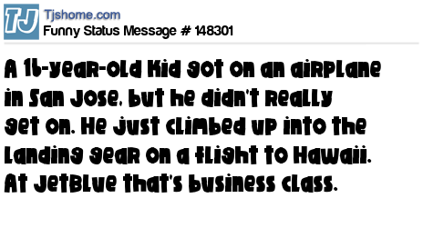 X says A 16-year-old kid got on an airplane in San Jose, but he didn't really get on. He just climbed up into the landing gear on a flight to Hawaii. At JetBlue that's business class.