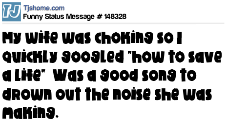 X says My wife was choking so I quickly googled "how to save a life" Was a good song to drown out the noise she was making.
