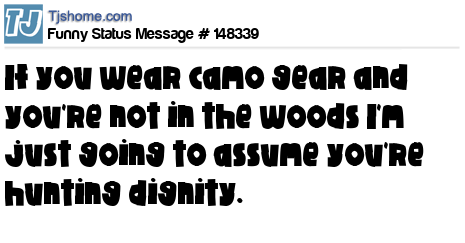 X says If you wear camo gear and you're not in the woods I'm just going to assume you're hunting dignity.