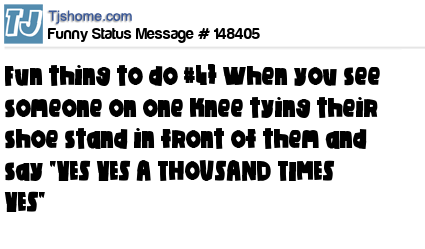 X says Fun thing to do #47 When you see someone on one knee tying their shoe stand in front of them and say "YES YES A THOUSAND TIMES YES"