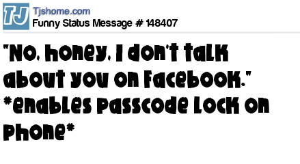 X says "No, honey, I don't talk about you on Facebook." *enables passcode lock on phone*