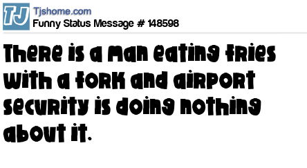 X says There is a man eating fries with a fork and airport security is doing nothing about it.