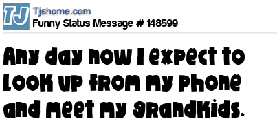X says Any day now I expect to look up from my phone and meet my grandkids.