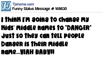 X says I think I'm going to change my kids' middle names to "DANGER" just so they can tell people Danger is their middle name...YEAH BABY!!