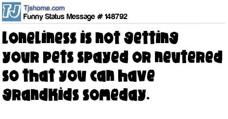 X says Loneliness is not getting your pets spayed or neutered so that you can have grandkids someday.
