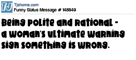 X says Being polite and rational - a woman's ultimate warning sign something is wrong.