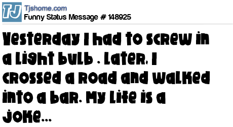 - # 151599 today I screwed in a lightbulb, crossed the road, and walked in to a bar ...my life is a joke