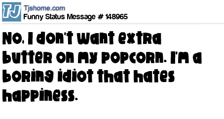 X says No, I don't want extra butter on my popcorn. I'm a boring idiot that hates happiness.