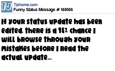 X says If your status update has been edited, there is a 95% chance I will browse through your mistakes before I read the actual update...
