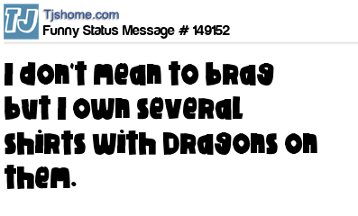 X says I don't mean to brag but I own several shirts with Dragons on them.