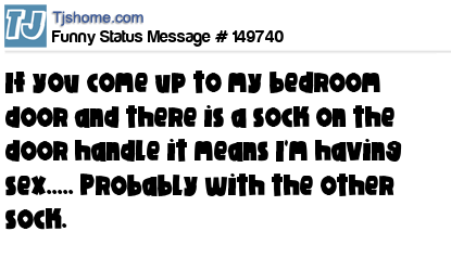 X says If you come up to my bedroom door and there is a sock on the door handle it means I'm having sex..... Probably with the other sock.