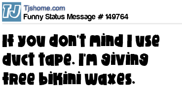 - # 147085 Ladies, you can stop with the expensive bikini wax treatments. I have a roll of duct tape. . .
