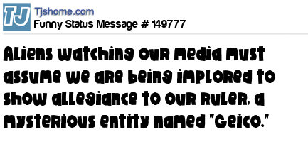 X says Aliens watching our media must assume we are being implored to show allegiance to our ruler, a mysterious entity named "Geico."
