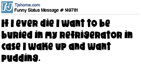 X says If I ever die I want to be buried in my refrigerator in case I wake up and want pudding.