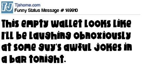 X says This empty wallet looks like I'll be laughing obnoxiously at some guy's awful jokes in a bar tonight.