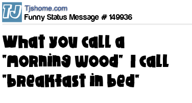 - # 139503 What I call morning wood, you're gonna call breakfast in bed.