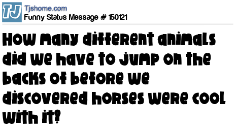 X says How many different animals did we have to jump on the backs of before we discovered horses were cool with it?