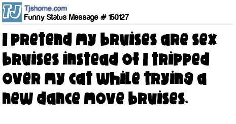 X says I pretend my bruises are sex bruises instead of I tripped over my cat while trying a new dance move bruises.