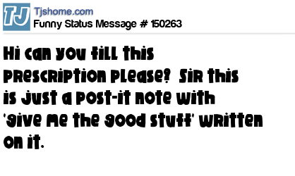 X says Hi can you fill this prescription please? Sir this is just a post-it note with 'give me the good stuff' written on it.