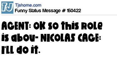 - # 129255 "Sure, why not" - Nicolas Cage being offered any role for any movie
