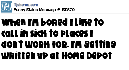 X says When I'm bored I like to call in sick to places I don't work for. I'm getting written up at Home Depot