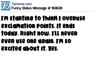 - # 10618 ...back in the 80's my mom would scold me and say "Don't use that tone of voice with me young lady!"....I just texted my 15-year old son and said "Don't use exclamation points with me Mister!"...my have times changed!