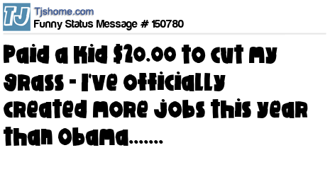 X says Paid a kid $20.00 to cut my grass - I've officially created more jobs this year than Obama.......