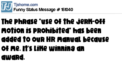 X says The phrase "use of the jerk-off motion is prohibited" has been added to our HR manual because of me. It's like winning an award.