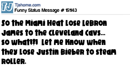X says So the Miami Heat lose LeBron James to the Cleveland Cavs... so what!?! Let me know when they lose Justin Bieber to steam roller.
