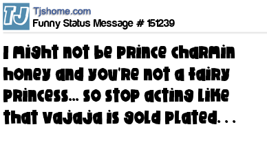 X says I might not be prince charmin honey and you're not a fairy princess... so stop acting like that vajaja is gold plated. . .