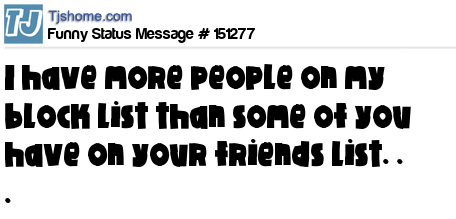 - # 166658 I just got a Congratulations message from facebook today, they said my block list has now exceeded my friends list...I wonder what I win lol