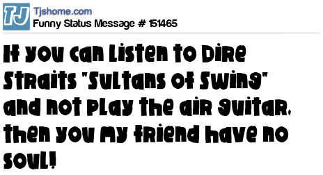 X says If you can listen to Dire Straits "Sultans of Swing" and not play the air guitar, then you my friend have no soul!