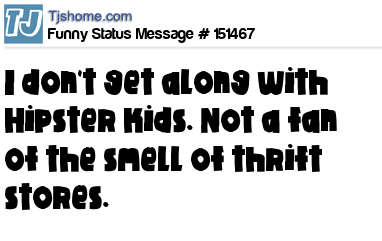 X says I don't get along with Hipster kids. Not a fan of the smell of thrift stores.