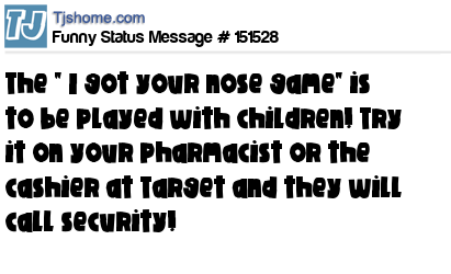 X says The " I got your nose game" is to be played with children! Try it on your pharmacist or the cashier at Target and they will call security!