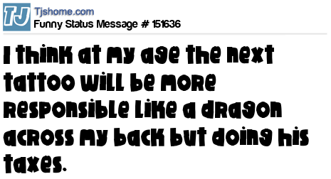 X says I think at my age the next tattoo will be more responsible like a dragon across my back but doing his taxes.