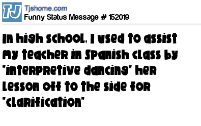 X In high school, I used to assist my teacher in Spanish class by "interpretive dancing" her lesson off to the side for "clarification"