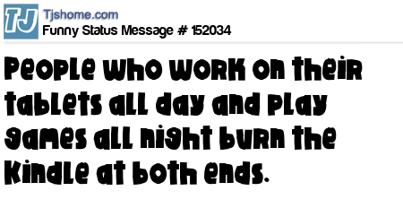 - # 179543 People who work on their tablets all day and play games all night are burning the Kindle at both ends.