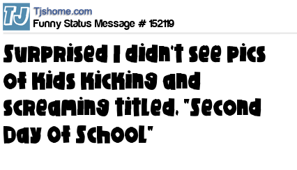 X says Surprised I didn't see pics of kids kicking and screaming titled, "Second Day Of School"