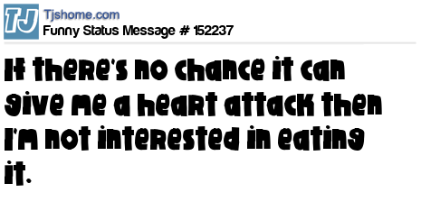 X says If there's no chance it can give me a heart attack then I'm not interested in eating it.