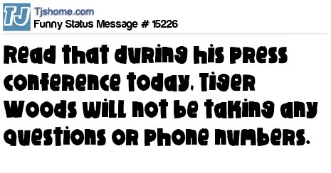 X read that during his press conference today, Tiger Woods will not be taking any questions or phone numbers.