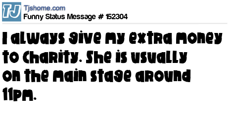 X says I always give my extra money to Charity. She is usually on the main stage around 11pm.
