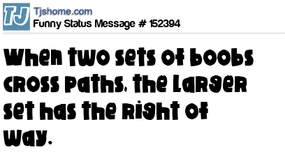 X says When two sets of boobs cross paths, the larger set has the right of way.