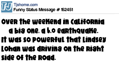 X says Over the weekend in California — a big one, a 6.0 earthquake. It was so powerful that Lindsey Lohan was driving on the right side of the road.