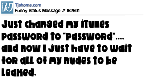 X says Just changed my iTunes password to "password".... and now I just have to wait for all of my nudes to be leaked.